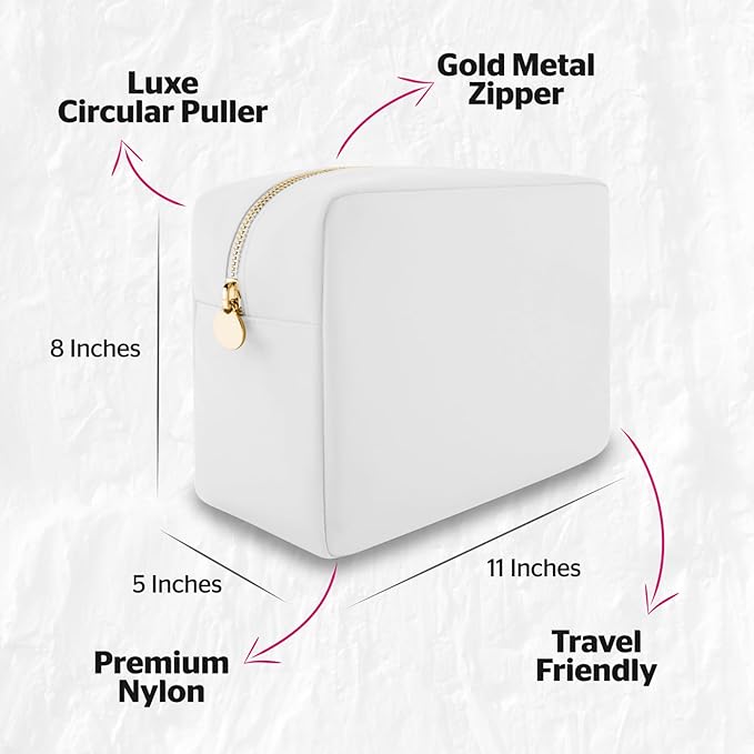 - PREMIUM QUALITY: The large makeup pouch is made of premium nylon material with a luxurious gold zipper pouches.