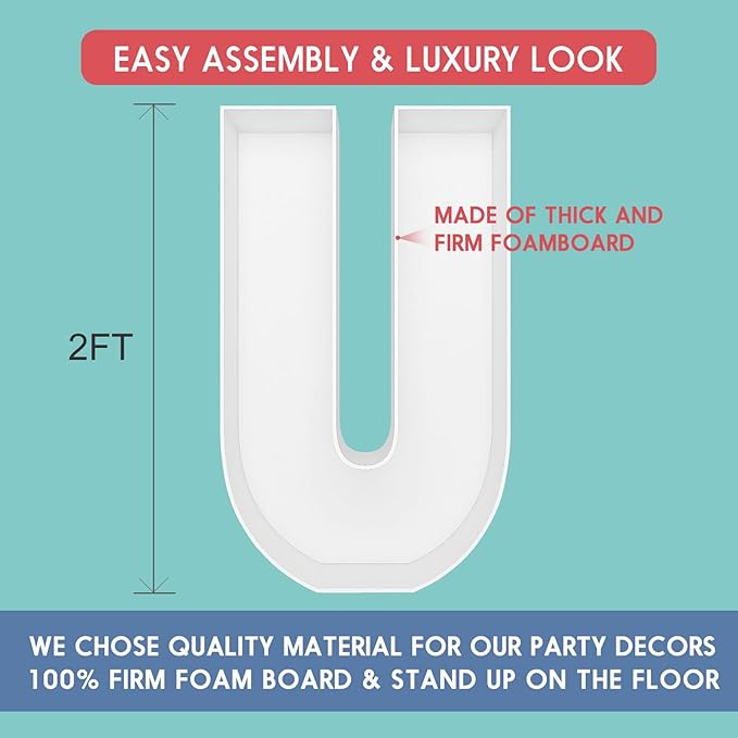 2FT Letter U Mosaic Balloon Frame Letter DIY Fillable Letters Kit for Birthday Party Wedding Backdrop Decor