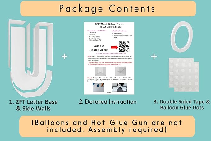 - FAST and EASY ASSEMBLY - Decorate your party like an event balloon artist! Our 2ft mosaic balloon frame letters are pre-cut to the perfect measurements, saving you the hassle of printing, measuring, and cutting templates yourself!