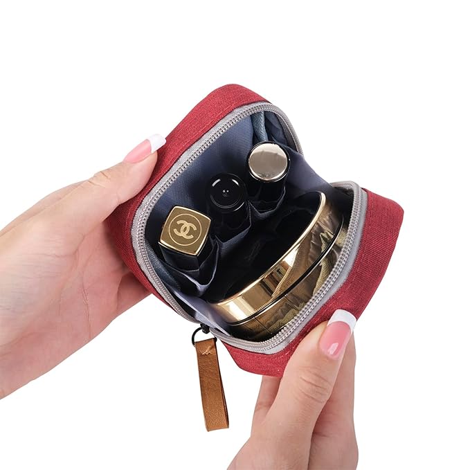 Hekyip Mini Cosmetic Bag, Travel Makeup Pouch, Portable Waterproof Cosmetic Pouch for Ladies Women, Mini (Mini Red)