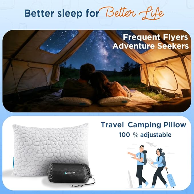 - [ LUXURY COOLING camping PILLOW ] The premium material enables your queen sleeping pillow to be ultra soft. Sleeping on this cooling bed pillow, just like sleeping on the cloud. So soft, so comfortable. The cover is removable and machine washable in cold water