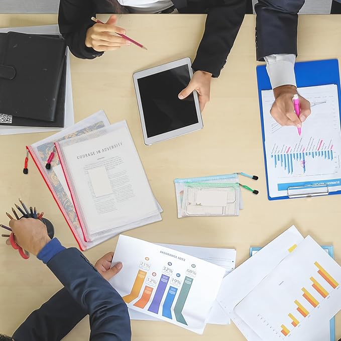 - [Advantages]: Translucent design and the colorful zipper can identify items. Organize clutter and live a simple life. Suitable for home, office, and travel, can be used to organize books, papers, bills, photos, cosmetics, etc.