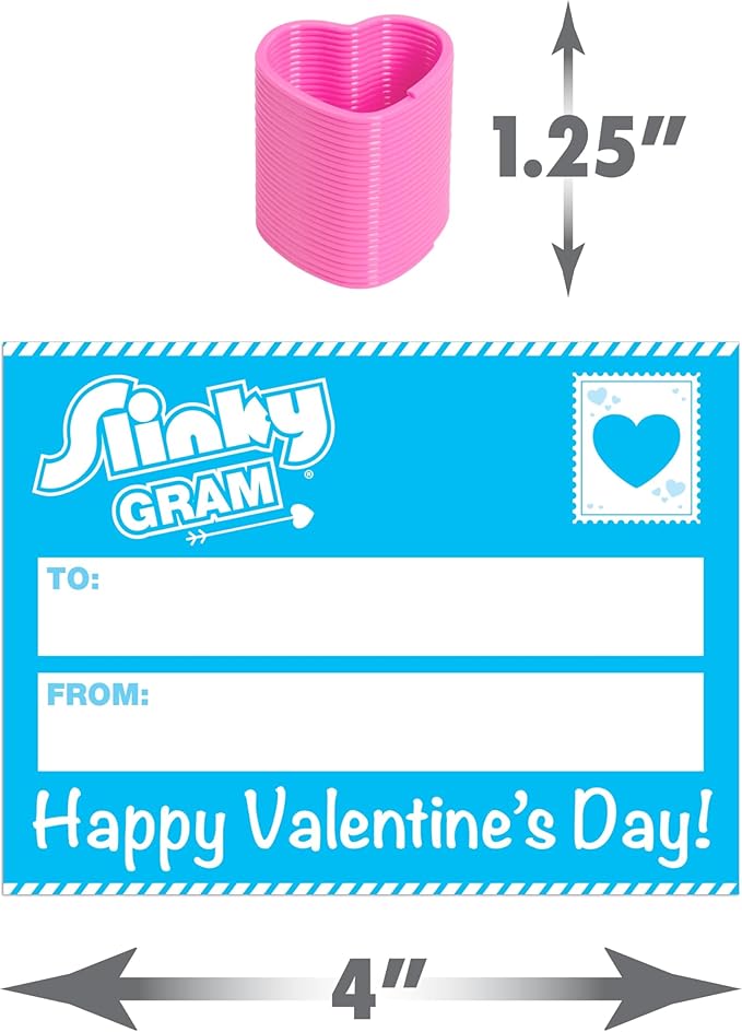 - The Original Fidget Toy: Spread some clickety-clackity love this February 14 with the Slinky Gram Seasonal Class Party Kit, which includes mini-Slinky spring toys in bright colors and shapes.