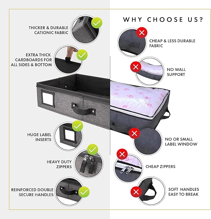 - 𝐄𝐱𝐭𝐫𝐚 𝐓𝐡𝐢𝐜𝐤 𝐒𝐭𝐮𝐫𝐝𝐲 𝐂𝐚𝐫𝐝𝐛𝐨𝐚𝐫𝐝𝐬: Unlike most under bed storage box, Homelux Theory's under the bed storage containers come with extra thick cardboard on each side and bottom part to help hold their shapes and withstand frequent use & heavy loads. While other under box for clothes and shoe organizer under bed storage in the market usually has flimsy sides made of thin, lightweight materials, our timeless storage boxes for under bed are crafted for long-term durability and reliable performance.