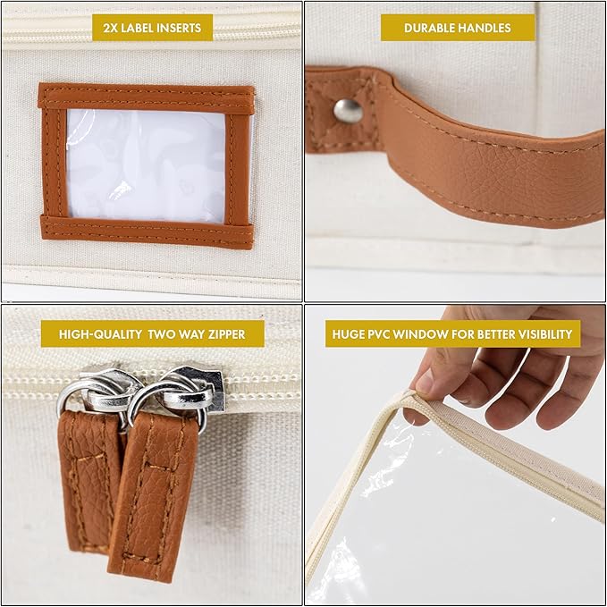 - ๐๐๐ข๐ง๐๐จ๐ซ๐๐๐ ๐๐จ๐ฎ๐๐ฅ๐ ๐๐๐๐ฎ๐ซ๐ ๐๐๐ง๐๐ฅ๐๐ฌ: Homelux Theory's storage boxes with lids for organizing comes with 3 fortified handles (Front, left and right), for effortless pull, slide, push & secure lift. The handles of these shallow under bed storage are also precisely stitched inside out, with additional rivets to strengthen the holding capacity that helps to withstand the constant pulling in and out of under the bed. These stylish storage for under beds can hold up to 35 lbs fo heavy-duty use.