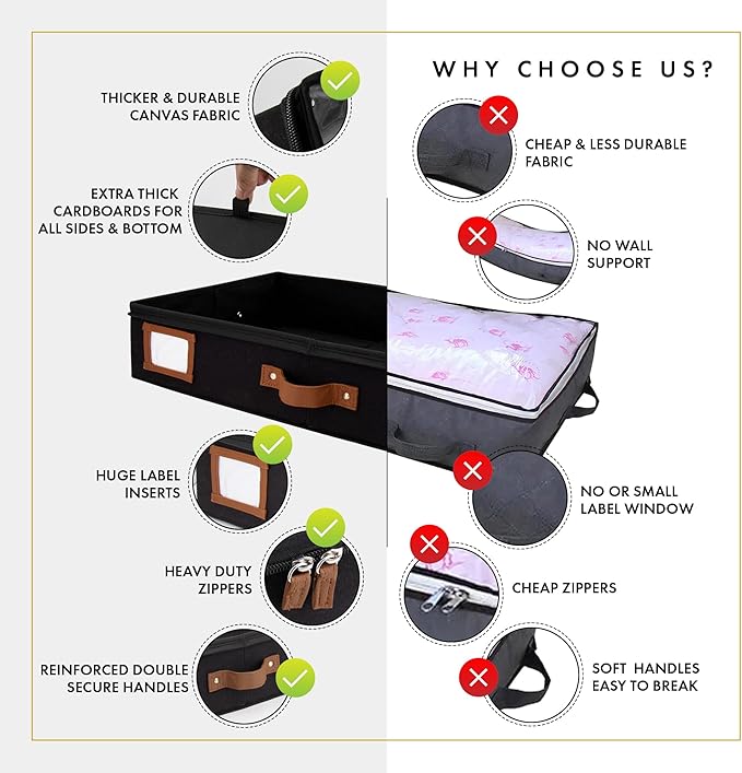 - ๐๐ฑ๐ญ๐ซ๐ ๐๐ก๐ข๐๐ค ๐๐ญ๐ฎ๐ซ๐๐ฒ ๐๐๐ซ๐๐๐จ๐๐ซ๐๐ฌ: Unlike most under bed storage box, Homelux Theory's under the bed storage containers come with extra thick cardboard on each side and bottom part to help hold their shapes and withstand frequent use & heavy loads. While other under box for clothes and shoe organizer under bed storage in the market usually has flimsy sides made of thin, lightweight materials, our timeless storage boxes for under bed are crafted for long-term durability and reliable performance.