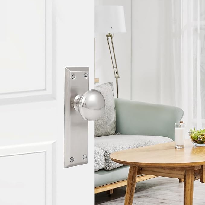 - This antique door knob is ideal for replacing or updating interior door hardware. Elegantly simple long plate in a classic brushed nickel finish, a great choice for your next project