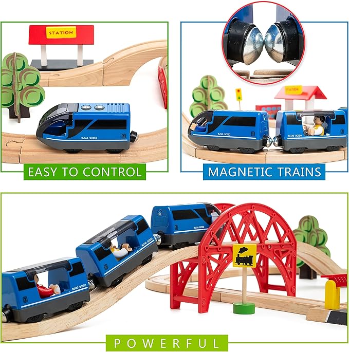 - UNIVERSAL COMPATIBILITY: Compatible with popular wooden railway brands such as Thomas the Train set, Brio Trains , and IKEA, the KipiPol kids Train Set seamlessly fits into existing train systems. It also works with standard wooden tracks, enabling easy expansion of your child's railway with additional track pieces and kipipol wooden train track accessories.