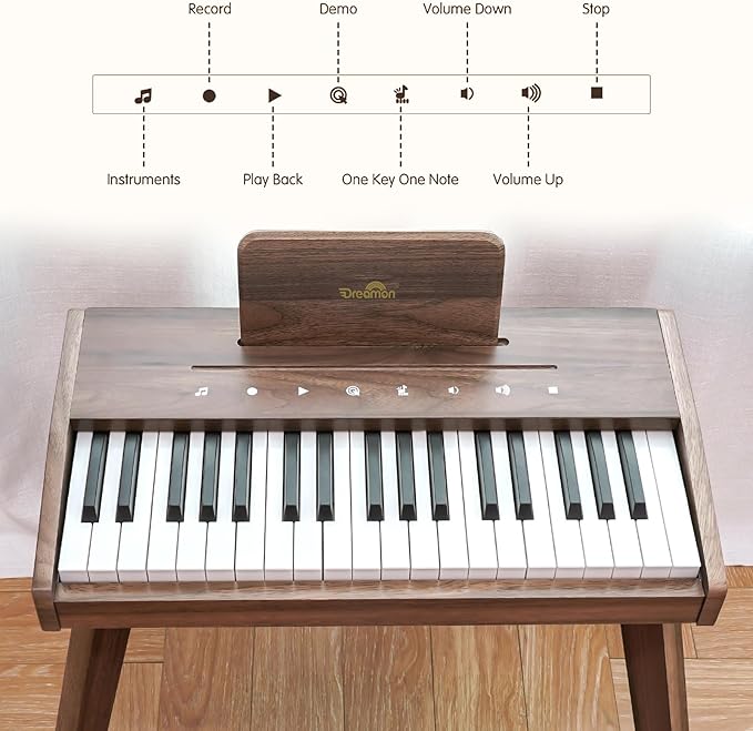 Dreamon Kids Digital Piano Keyboard, Music Educational Instrument Toy, Wood Piano for 3+ Girls and Boys, Christmas & Birthday Gifts for Kids Ages 6-12 Years Old