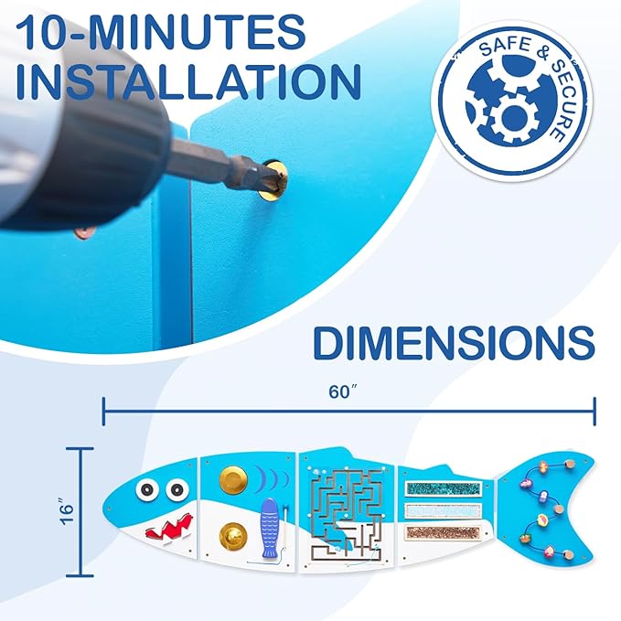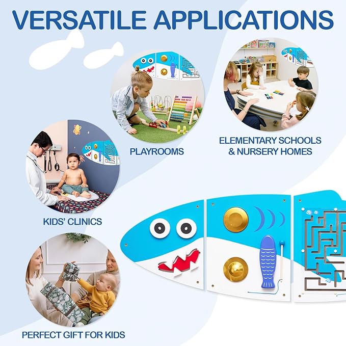 Monläurd® Shark Montessori Busy Sensory Educational Activity Cube, Wall Furniture, Interactive Wooden Learning Toys for Boys and Girls 6M+