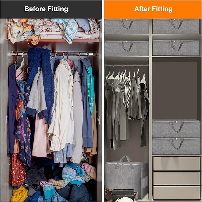- 【Durable Storage Bags for Comforters and Blankets】Compared with common fabric, this storage bag organizer is made of advanced cationic fabric, which is softer and more breathable than oxford fabric, and stronger and more durable than non-woven fabric. Kind Note: The bag will keep its shape while full for stacking or while carrying by the handle, perfect for storage larger items or moving.