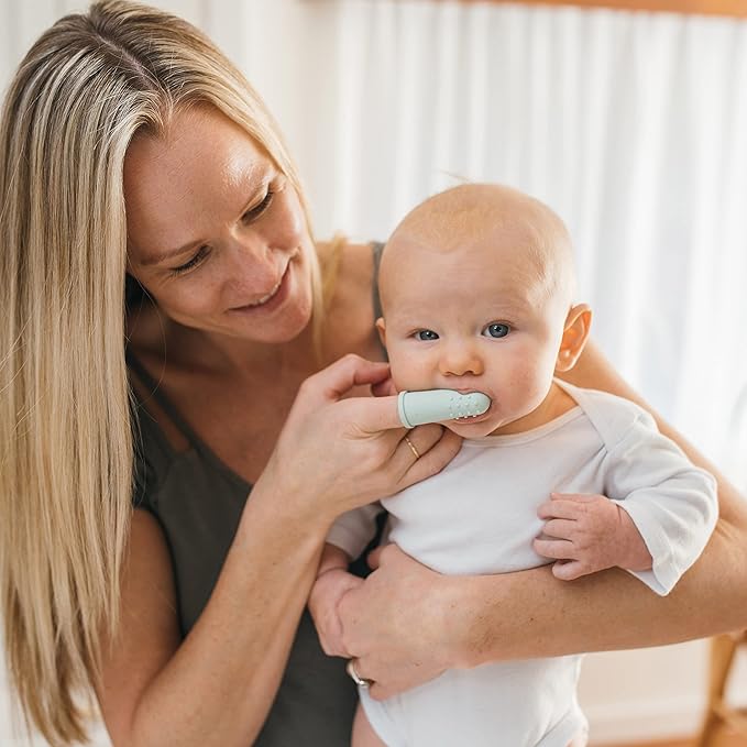 - BABY’S FIRST TOOTHBRUSH. Teach baby healthy oral hygiene habits with the super-soft 100% silicone finger toothbrush that’s gentle on sensitive mouths.