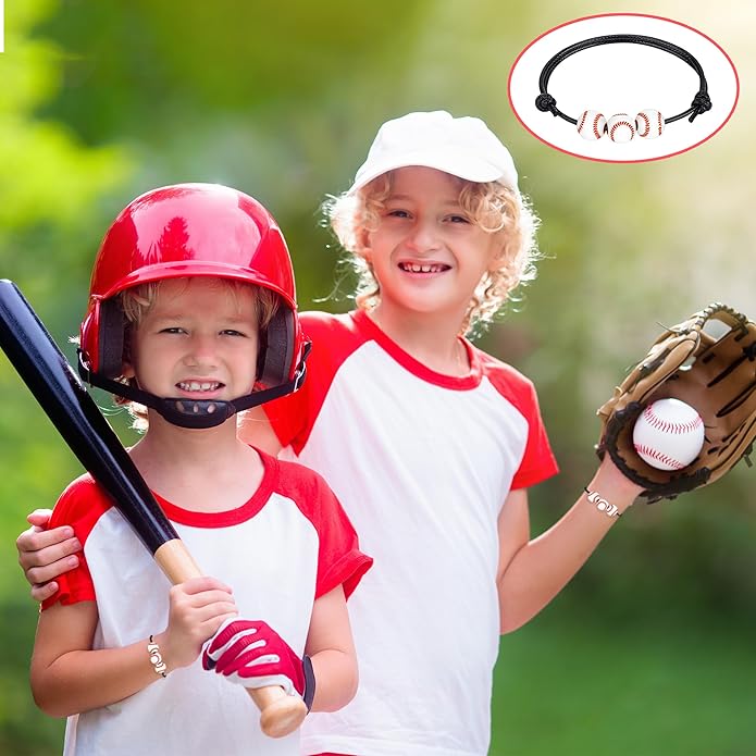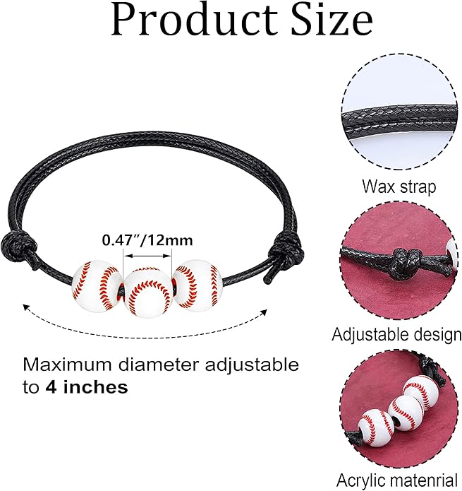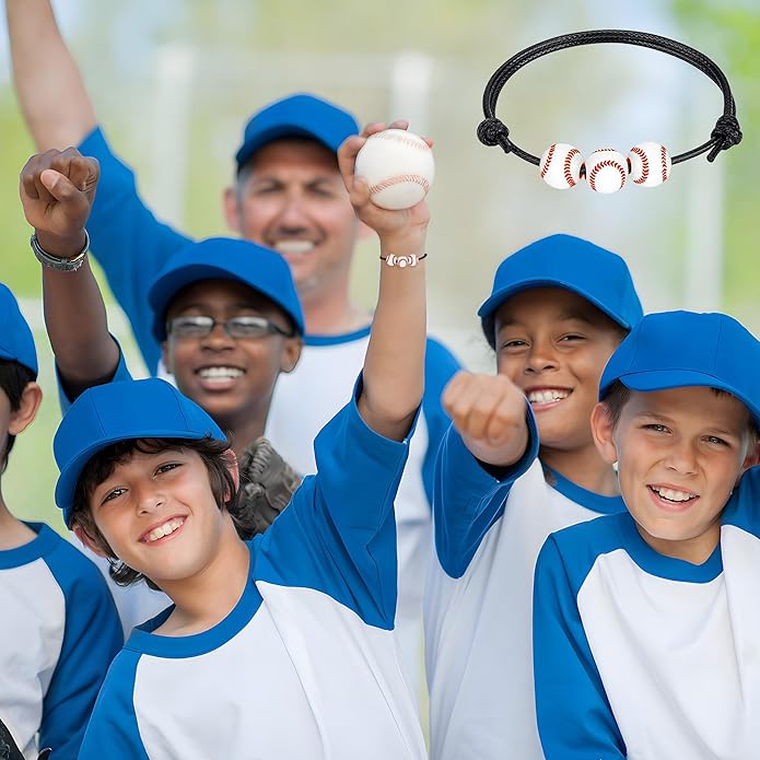 - 【Adjustable Sizes】This baseball charm bracelets with three baseball balls wristbands party decorations adopts a cute, simple and adjustable design, the diameter of the bracelet string can be adjusted up to 10 cm/4 inch.attached with eye-catching sport Baseball party favors decorations which is very suitable for Teens, Adults and ball team.