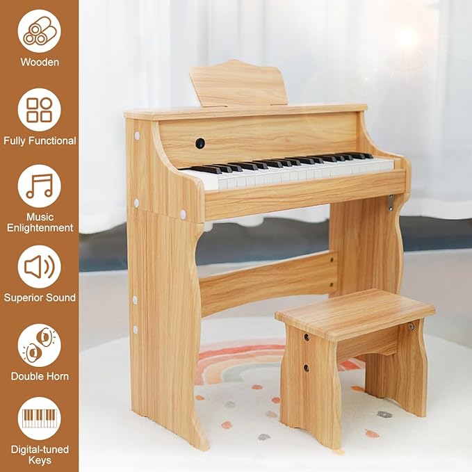 - [Safe Material & Stable Structure]—Delicately made of high-quality wood, this toddler piano shows perfect performance in lasting durability and great sturdiness. Plus, the safe painted finish will not injure children's skin while using it and round corners bring a full sense of security.
