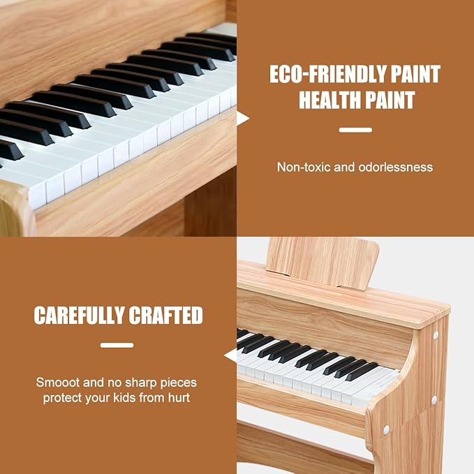 - [Safe Material & Stable Structure]—Delicately made of high-quality wood, this toddler piano shows perfect performance in lasting durability and great sturdiness. Plus, the safe painted finish will not injure children's skin while using it and round corners bring a full sense of security.