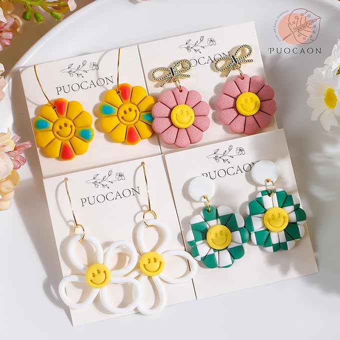 Puocaon Smiley Sunflower Clay Cutters - 6 Pcs Polymer Clay Cutters for Earrings Making, Smiley Face Flower Clay Cutters Set Polymer Clay Jewelry Making, Spring Daisy Earrings Clay Cutters Shape