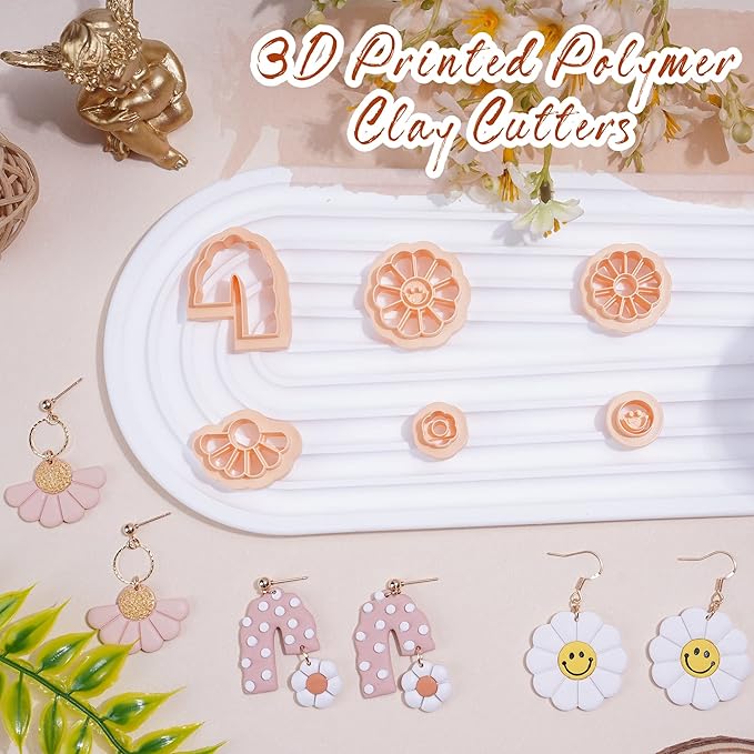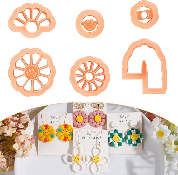 - Daisy Flower Polymer Clay Cutters: Spring clay cutters set, 4 different flower shapes clay cutters, 1 basic pendant shape and 1 smile clay cutters. You can use these cute clay cutters making polymer clay earrings.