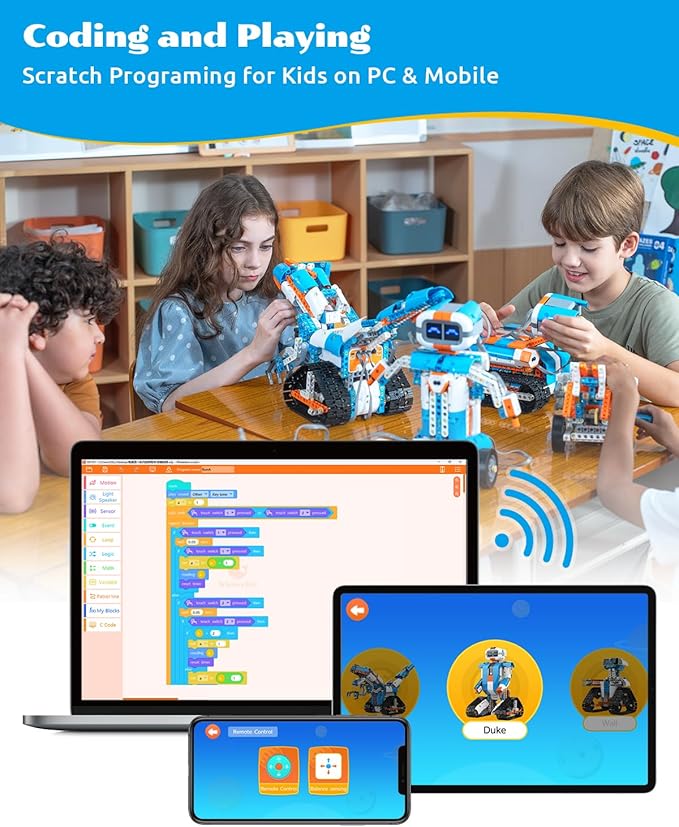 - Scratch & WhalesBot - Coding While Playing: WhalesBot E7 Coding Robot controller supports Scratch programming. Through visual drag-and-drop programming, children can control the E7 Pro robot as they wish.