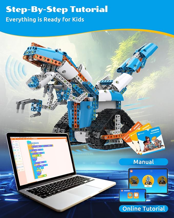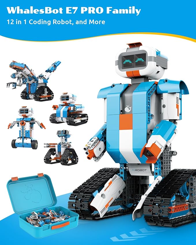 WhalesBot E7 Pro 12-in-1 STEM Coding Robot Kit for Kids 8-12, 637-Piece Building Set with Scratch Programming, Interactive Books & 3D APP Guidance – Ideal Educational Toy for Boys & Girls