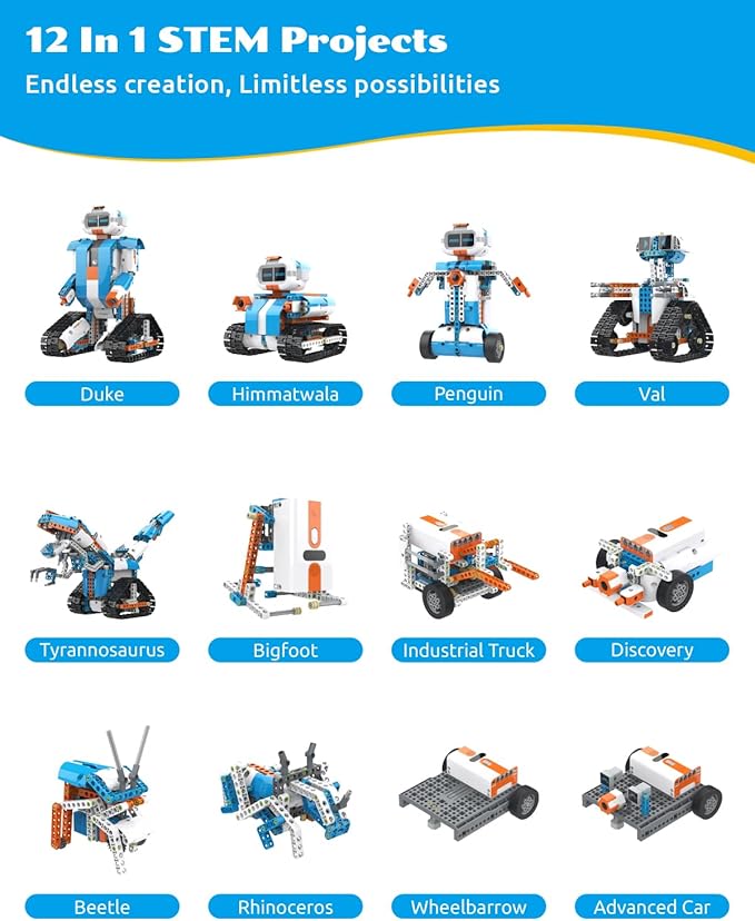 - 12-in-1 Robot Model & Unlimited Creativity: WhalesBot provides 12 different models of robot construction, children's hands-on ability can be fully exercised, and they can create their own robots with their creativity and imagination.