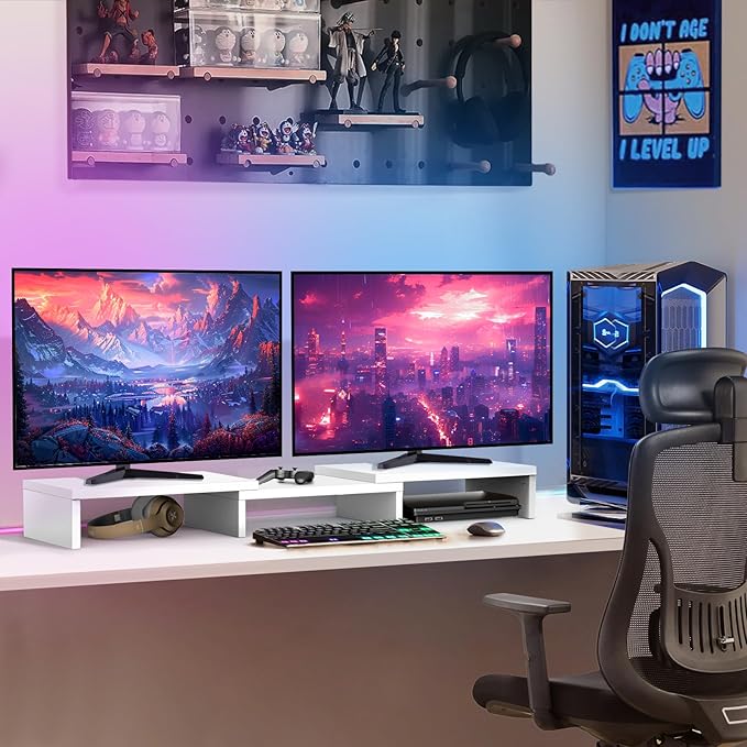 TAVR Furniture Dual Monitor Stand Riser, Computer Monitor Stands for 2 Monitors, Extra Long Multifunctional Desktop Organizer Riser for Computer, Laptop, PC, Printer, TV, Max 43.3" Length, White