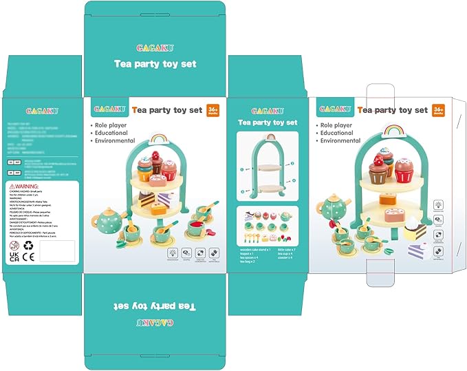 - 【26PCS Wooden Tea Set】GAGAKU kids tea set consists of 1* Wooden Cake Stand 7* Muffin 1* Teapot 4* Teacups 4* Teaspoons 4* Coasters 2* Tea Bags; meets everything you need to organize a small tea party set.
