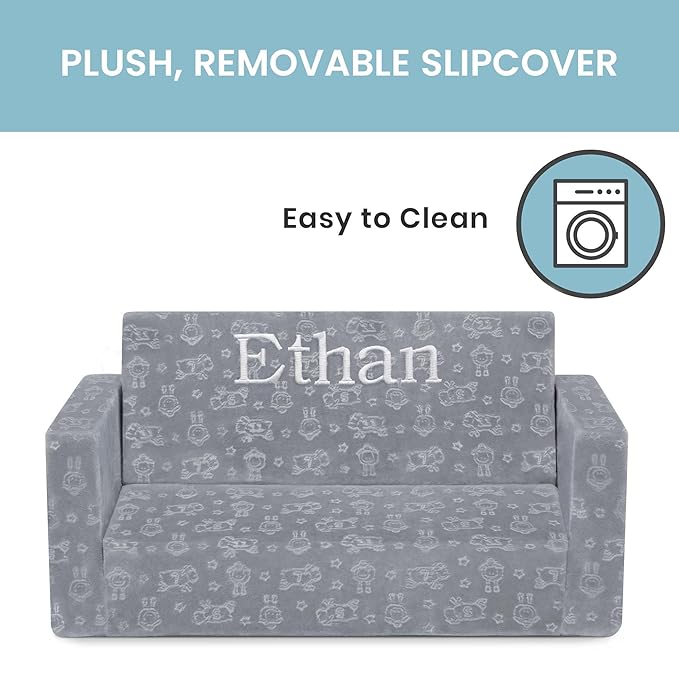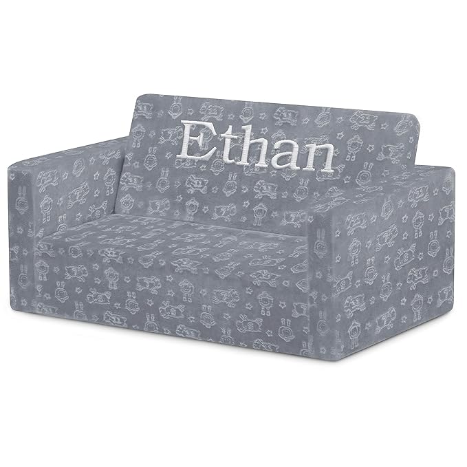 - PERSONALIZE YOUR SOFA: Personalization available in up to 9 characters and in multiple fonts | Your child’s name will be beautifully embroidered in the font and thread color of your choice – add to your cart to customize!