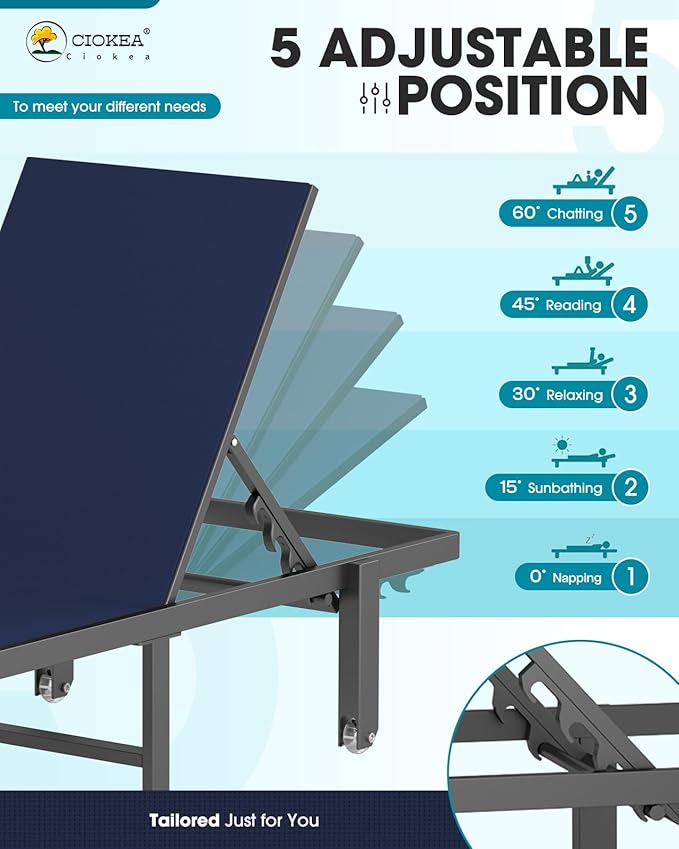 - Enhanced Mobility: With the added convenience of wheels at the base, moving your CIOKEA lounge chair around your patio or garden has never been easier. This upgrade allows effortless repositioning so you can always find just the right spot in the sun or shade
