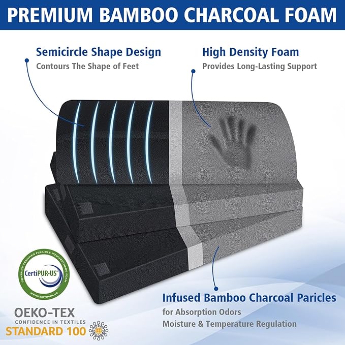 - [Supportive High Density Foam] The foot rest under desk utilizes high-density foam infused with bamboo charcoal particles. Compared to ordinary foam, high-density foam provides better support, less deformation, and greater resilience. Additionally, the filled bamboo charcoal particles effectively regulate temperature and odors.