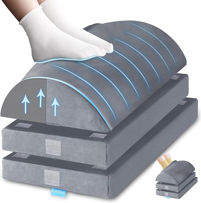 - [Ergonomic Design] The desk foot rest cushion conforms to ergonomic design principles by providing foot support and alleviating the pressure, aching, and discomfort in the back and hip. By using a foot rest at work, you can gradually develop correct sitting habits. This is an excellent option for people who spend long hours sitting in an office.