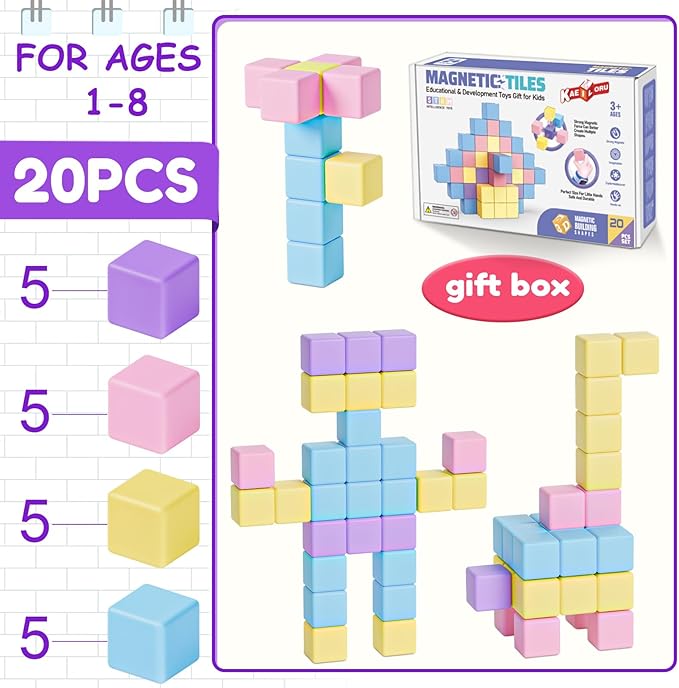 - 【Starter Set】This magnetic blocks beginner set include 20 pieces,4 macaron colors,a storage bag and an idea booklet. From simple shapes to complex structures,toddlers 3-4 can enjoy endless fun.Highly recommended for families, kindergartens, daycare centers and preschools.More pieces, more possibilities.