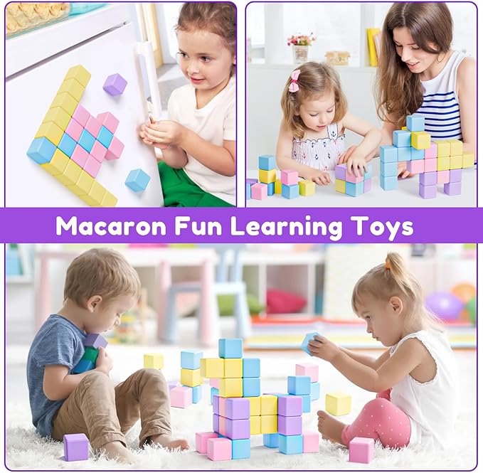 Magnetic Blocks for Toddlers Ages 3-5 Macaron 1.21 Inches Magnetic Building Blocks for Kids Ages 4-8 Gifts Montessori Magnet Cubes Sensory Toys for 3+ 4 5 6 7 Year Old Girls Boys Birthday Christmas