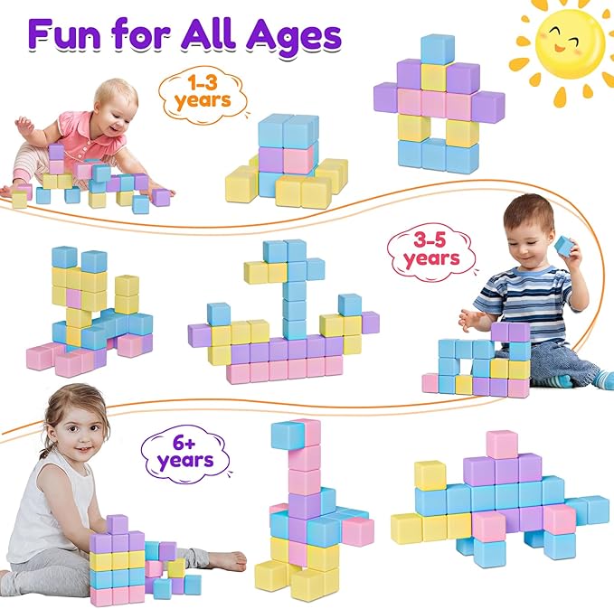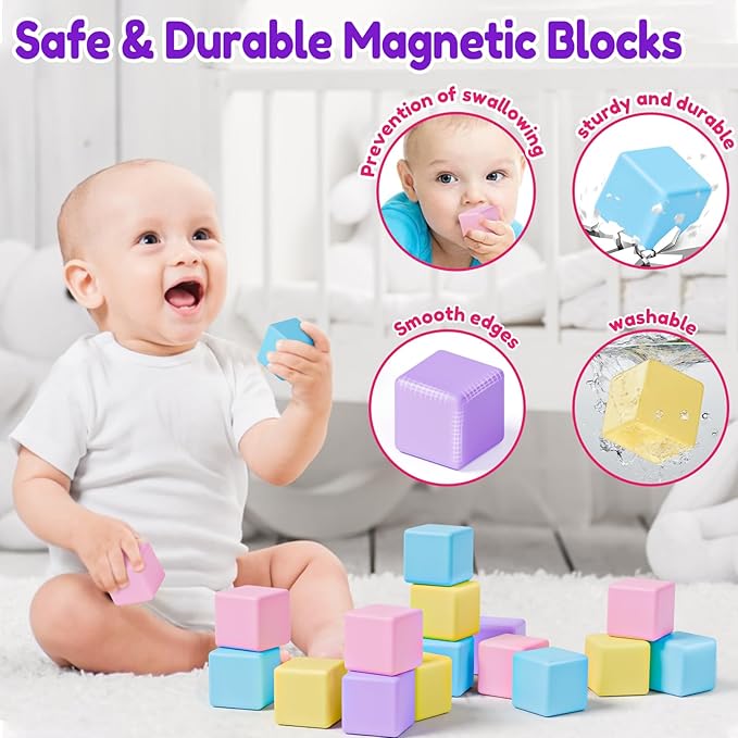 - 【Premium Materials&Strong Magnetism】The magnetic cubes are made of quality ABS safety material which can be recycled.Smooth surface,ultrasonic sealed,rounded edge design. These will protect from hurting your child's skin while playing.
