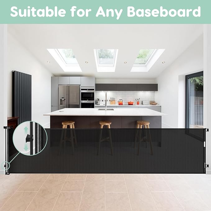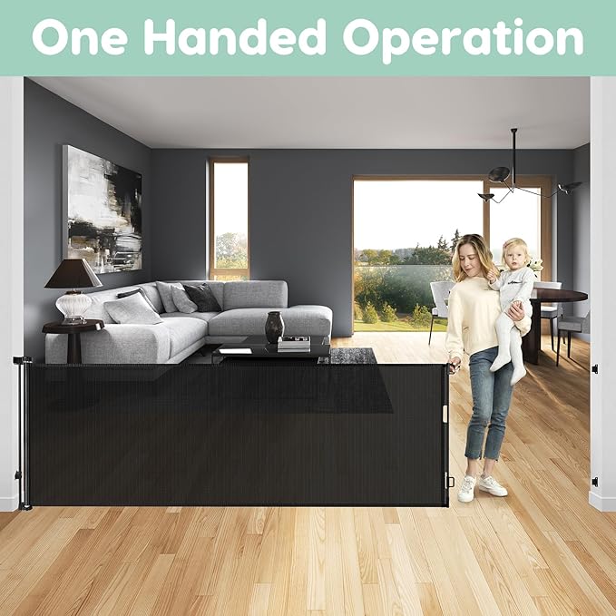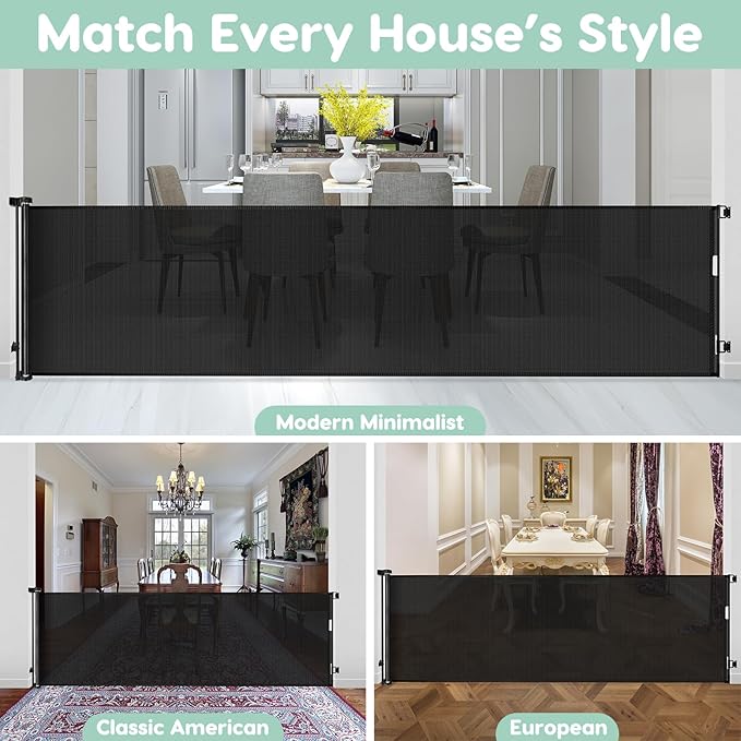 - Saving Space: the extra long baby gate is retractable gate, so when you're having a party at home or when your babies and pets are not at home you can roll up the mesh and not take up your space.