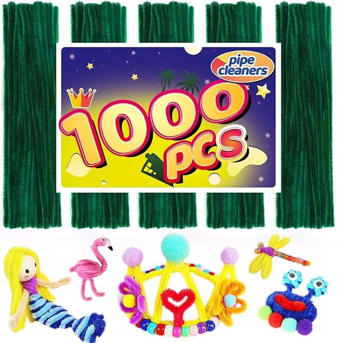 Pipe Cleaners, Pipe Cleaners Craft, Arts and Crafts, Crafts, Craft Supplies, Art Supplies (1000 Dark Green Pipe Cleaners)…