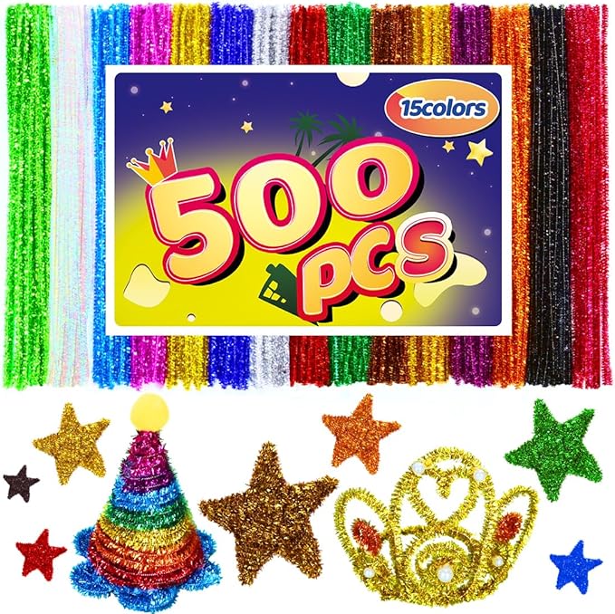 Pipe Cleaners, Pipe Cleaners Craft, Arts and Crafts, Crafts, Craft Supplies, Art Supplies (500 Glitter Pipe Cleaners)…