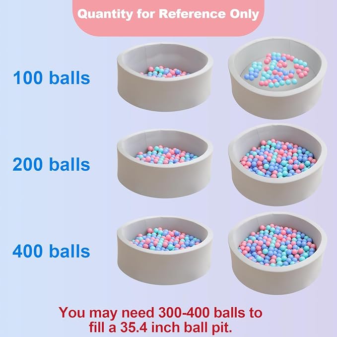 - Vacuum Design: This kids ball pit is vacuum sealed and needs to sit for 48-72 hours to return to a perfect round shape. To speed up the process, you can use a hair dryer or place a pillow inside the ball pool. It's also very easy to clean, just remove and wash the covers