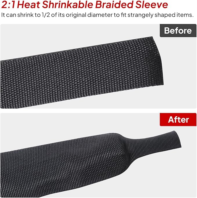 - Excellent Abrasion and Friction Resistance:The thick and strong strands form a tight braided structure so that the heat shrink braided sleeve has excellent abrasion and friction resistance;ideal for use in messy cable,wire,hose