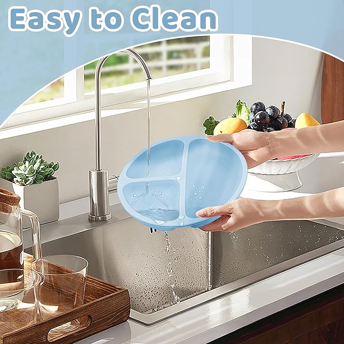 - [Super Strong Suction] Say goodbye to messy meal times! Our silicone plates and bowls come with powerful suction cups that firmly secure them to flat surfaces. No more food spills, making cleanup a breeze