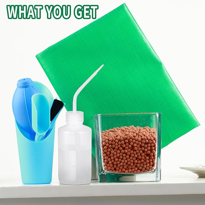 - Great Value Packages: What Do You Get? In this clay pabble set, you will get 6lb of ceramsite (size 4-5mm), a set of succulent tools, a water bottle and a waterproof PE planting mat to avoid soiling the floor when planting.