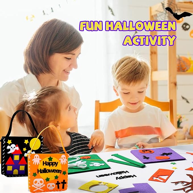 Flying Childhood Sew Your Own Bags - Kids Sewing Kit - Felt Crafts for Kids - Make 6 Felt Trick or Treat Bags - Birthday Gifts for Girls