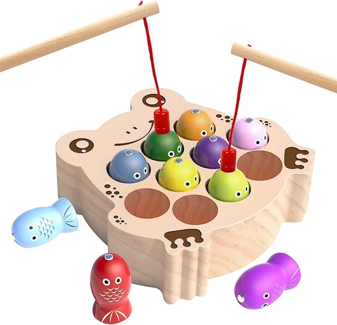 Wooden Magnetic Fishing Game for Toddlers 1-3, Frog Fishing Color Sorting Montessori Sensory Preschool Educational Learning Fine Motor Skills Toys for 3 4 5 Years Old Boys Girls