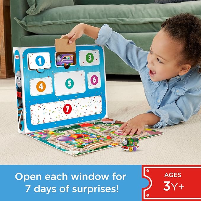 - Countdown to fun: Kids can open a window every day for 7 days to discover a mystery toy hiding inside. By the big day, they'll have a whole railway of play!