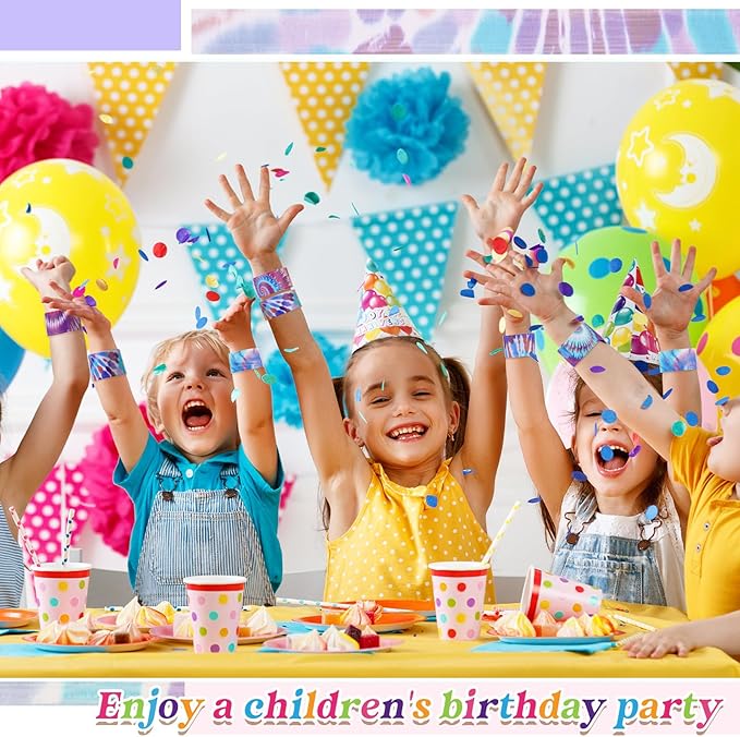 - Simple to Wear: just tap the tie dye wristband gently on your wrist, and then it will form a circle and firmly stay on your wrist, convenient and easy to use, and suitable for most kids and adults, adding much more fun to birthday party or carnival parties