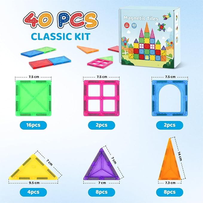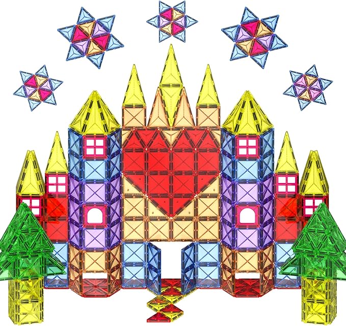 - Safe Materials and Design: Non-toxic materials, made to last quality, every piece withstands shocks and impacts during play. Strong fastening parts keep magnetic tiles from cracking or splitting, while smooth frame and corner design protect kids’ fingers from being cut.