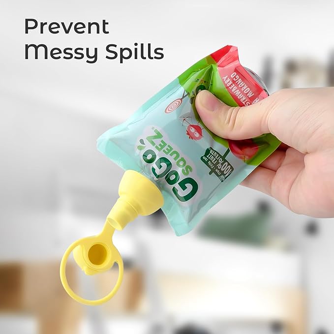 - Prevent Messy Spills: Giichen food pouch toppers helps to promote your children self feeding while preventing spills and messes. You don't have to worry about couch, coffee table, or carpet being soaked again
