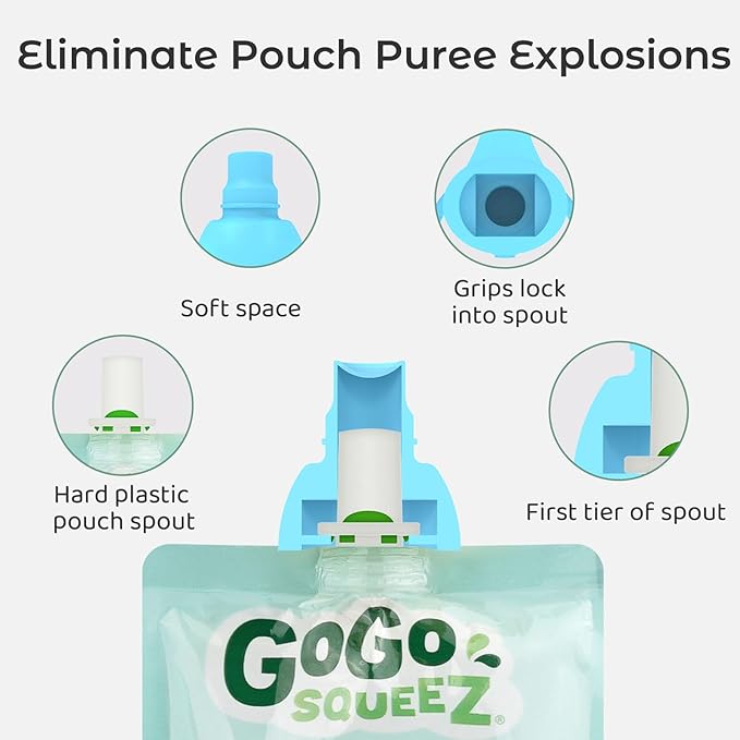 - Prevent Messy Spills: Giichen food pouch toppers helps to promote your children self feeding while preventing spills and messes. You don't have to worry about couch, coffee table, or carpet being soaked again