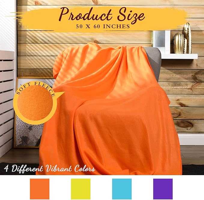 Kinlop Fleece Blanket Bulk 60 x 50 Inch Soft Lightweight Fleece Cozy Blanket Warm Throw Plush Pet Throw for Bed Couch Sofa Home Office Wedding Gifts Travel Camping(Bright Color,40 Packs)