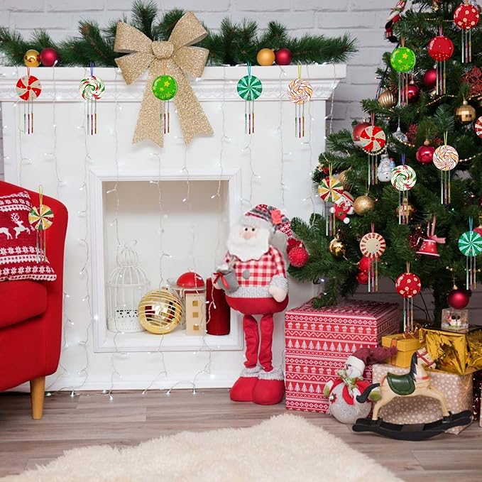 Fennoral 9 Pack Christmas Wind Chime Kit for Kids Make You Own Christmas Candy Wind Chimes DIY Paint Wooden Art and Craft for Girls Boys Christmas Craft Supplies Christmas Tree Decorations