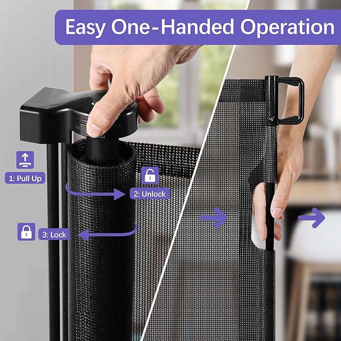 - Easy One-Handed Operation: Adults can effortlessly open/close the retractable fence with just 1 hand, while also preventing accidental access by kids.